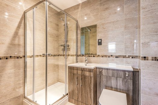 - Fully tiled walls and floor